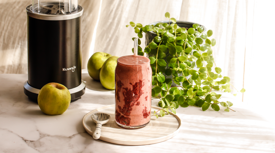 Place all ingredient in your Kuvings Nutri Blender and blend for 10 seconds or until smooth.Pour in a glass to serve, or screw on your on-the-go lid to take with you if you are traveling.