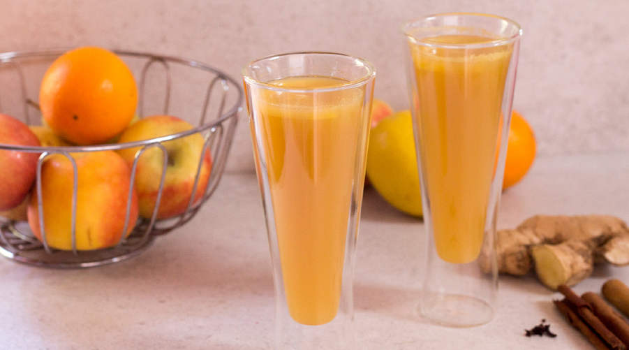 Feed the apples through your Kuvings Whole Slow Juicer. Pour the juice in a medium size pot and add all other ingredients. Slowly heat the juice until it starts bubbling – don’t boil it. Turn down the heat and let it simmer for 10 minutes. Pour into your favourite cosy-moment-cup and enjoy your spicy warm apple drink!